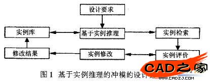 智能沖模 CAD系統設計包括四個模塊:沖模的知識建模模塊,實例檢索模塊,實例修改模塊和知識更新模塊。基于實例推理的智能沖模 CAD設計過程:分析沖模的設計任務,提取作為檢索條件的沖模相似特征,并作為設計要求輸人系統;根據輸入的設計要求,經過基于實例的推理,尋找與沖模最相似的實例,從實例庫中提取出來;根據設計要求,對提取的沖模實例進行修改,設計出滿足要求的沖模;最終形成的沖模實例作為新的實例存儲于實例庫中。基于實例推理的沖模設計過程,如圖1所示。
