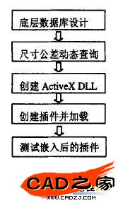 首先建立尺寸公差數(shù)據(jù)庫,數(shù)據(jù)庫中存儲標準公差、孔的極限偏差和軸的極限偏差等數(shù)值表。建立數(shù)據(jù)庫后,采用ADO數(shù)據(jù)訪問技術(shù),實現(xiàn)動態(tài)查詢尺寸公差。然后創(chuàng)建ActiveX DLL,目的是將動態(tài)查詢和尺寸標注功能封裝為一個插件,供SolidWorks調(diào)用。將生成的.DLL文件通過注冊等方式加載到SolidWorks環(huán)境供用戶使用。最后測試嵌人后的播件,看是否存在問題。
