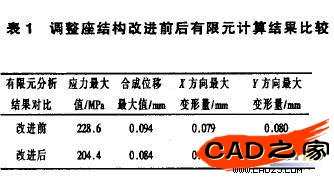 調整座經結構優化設計后,其性能得到了改善。