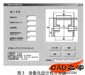 運用VB可以方便的建立程序的主界面如圖4所示,設計人員只需要在輸人參數部分輸人相應的參數,默認情況下,零件的參數如表1所示,活塞其它尺寸參數與輸人參數之間的關系在輸人參數下方有說明,然后點擊創建就可以建立所要求的零件模型。