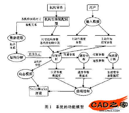 系統具備對由轉動副、移動副等連接而成的連桿機構進行三維參數化實體建模、運動學分析以及動態仿真的功能(見圖1)