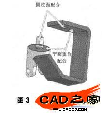 圓柱面同軸心配合單擊裝配體工具欄上的【配合】,配合管理器出現(xiàn),在圖形區(qū)域中選擇如圖3所示的圓柱面,零部件移動到位,預覽配合,執(zhí)行以下操作:單擊【同軸心】,作為配合類型,單擊確定,同心配合出現(xiàn)在特征管理器中配合下。