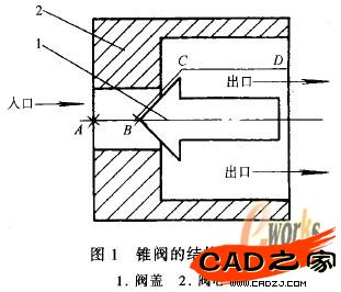 圖1所示為錐閥的閥口結構簡圖。進口直徑為30mm,閥腔直徑為80mm,閥心半錐角為45°,閥心開口度為可變參數。