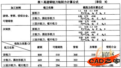 銑削時,Fe、Fc和Fv與主切削力抑之間有一定的比例關系,因此,求出主切削力之后,便可以計算出Fe, Fc和Fv。
