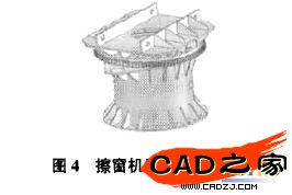 圖6是吊籃撐架的裝配模型,要注意的一點是中間連接部分是由螺栓固定的,其建模仍然是采用"圓周陣列草圖"的方式完成。