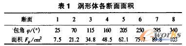表 1為渦形體各斷面面積。