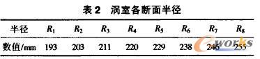 渦室各斷面的半徑如表2。