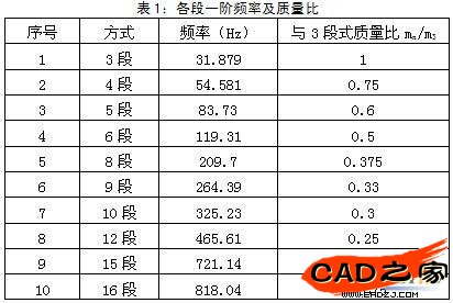 式中k為剛度、m為質量、f0為固有頻率。設3段方式固有頻率為f3,剛度為k3,質量為m3;其余各段固有頻率為fn,剛度為kn,質量為mn。