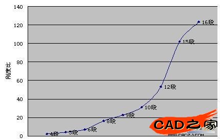 為了增加壓環的剛度,必須縮短其單根長度,這樣就需要將壓環截為更多段。我們針對3段到16段中能夠被360度除盡的段數進行了模態分析及靜力分析,因為這些樣本在加工中較易實現。力圖通過分析剛度比及靜位移量曲線圖,從剛度和抗變形能力兩方面來找出壓環的優化分段方式。