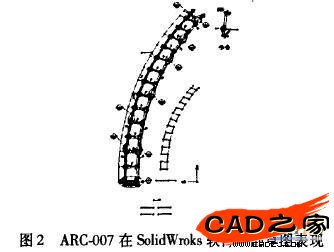 先將文件ARC-007. dwg用AutoCAD軟件打開,把需要實(shí)體建模的部分復(fù)制、粘貼到SolidWorks的實(shí)體建模的環(huán)境中,作為在SolidWorks草圖設(shè)計(jì)的幾何參考數(shù)據(jù),如圖2所示。