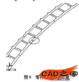 仔細觀察圖4,可以發現很多地方的幾何圖素缺乏可靠的約束,甚至是十分粗糙,如圖5所示。由此可見,委托方提供的CAD施工圖中很多幾何元素呈現交叉、重復、連接點斷開的現象。