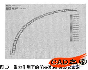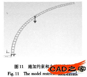 在安裝的時候,析架會由于重力作用出現(xiàn)安裝誤差,必須在安裝之前,進行分析,以減小安裝誤差?,F(xiàn)在來分析該棍析架在重力作用下的受力狀態(tài)。首先,把該棍析架的底座固定住,并施加重力,如圖11所示。