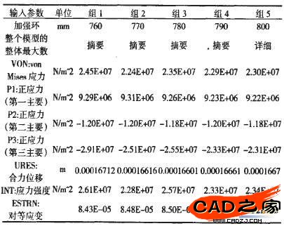 通過設計情形結果的顯示概要還可以得到整個推力架模型在不同設計情形下的七種整體最大數,如表3所示。