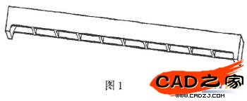 傳統(tǒng)石材加工用橋式機(jī)床一般橫梁跨度都在3-5m 之間,其所使用的結(jié)構(gòu)形式如圖1 所示。橫梁由前后兩塊側(cè)板和上頂板及左右兩側(cè)的側(cè)板構(gòu)成,中間有連接的加強(qiáng)筋。其中在橫梁的下方,兩側(cè)板之間還應(yīng)當(dāng)留有安裝一根絲杠和一根轉(zhuǎn)動軸的位置。