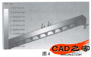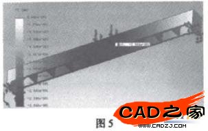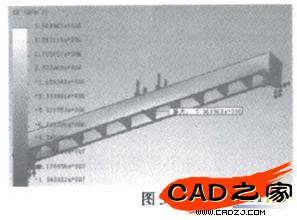 (5) 分析從圖解中可以看出,橫梁應(yīng)力、應(yīng)變的最大初均出現(xiàn)在橫梁兩側(cè)側(cè)板的中間部位,橫梁中心最大Y 向最大位移為0.25mm. 通過探測橫梁中間的加強(qiáng)筋還發(fā)現(xiàn),橫梁中間的加強(qiáng)筋幾乎不承受應(yīng)力。