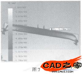 使用與傳統結構相同的方法,在Solidwork 中建立模塑。添加與之前相同的約束和載荷及網格并進行分析計算。其Y 向位移如圖7 所示。