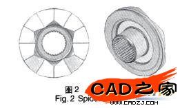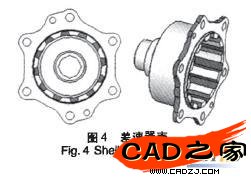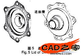 圖5是差速器蓋的結構圖,裝配時差速器蓋通過螺栓連接在差速器殼上,潤滑油經進油槽流入差速器殼體內,保證滑塊、差速輪以及差速器殼能夠在潤滑環境中正常工作。