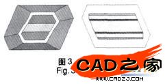 滑塊兩端分別加工有與差速輪相應的、左右旋交替的螺旋面,如圖3所示。它有相互對稱的兩種形式,裝配時沿差速器殼內孔表面的圓周方向相間地裝人內孔表面的軸向槽內。