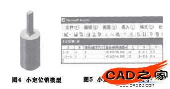 (1)數據庫分析在進行機床夾具定位件設計過程中需要用到的各種零件,利用Microsoft Access為每一種零件建立零件尺寸數據庫,如小定位銷尺寸數據庫、V型塊尺寸數據庫等。在數據庫建成后,在應用程序中通過VB自帶的數據控件與相應的數據表鏈接。