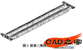 系統根據定義的約束關系進行自動求解,避免了裝配干涉等問題。橋架三維模型,如圖3所示。