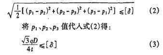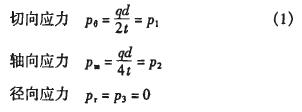在薄壁圓筒結(jié)構(gòu)中。在相對(duì)于P1、P2的第三個(gè)方向上作用于內(nèi)壁的內(nèi)壓力q和外壁上的大氣壓力都遠(yuǎn)小于P1、P2(可以認(rèn)為是零)。主應(yīng)力為p1、P2、P3,且PI>p2>p3,根據(jù)第四強(qiáng)度理論的強(qiáng)度條件,有