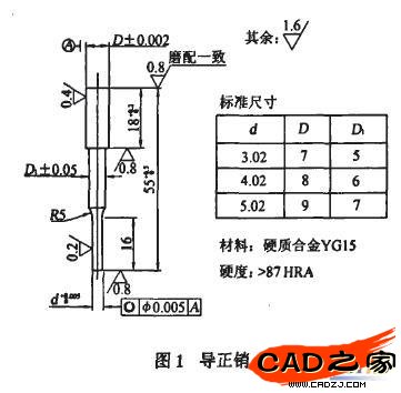 建模功能,以圖1所示企業標準的導正銷為例。建庫方法為: