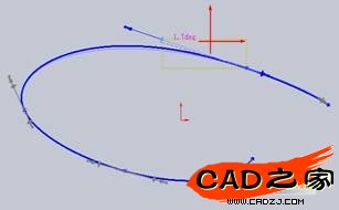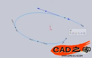 選定畫好的樣條線,Solidworks用米花點顯示現有控制點,同時,在點上還智能的顯示出帶有前后箭頭的控制柄如圖所示。