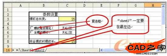 公式意義:如果Sheet2上的"全螺紋螺釘"復選框選中則自動計算螺紋圈數