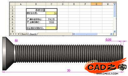 如果沒有選中此復選框,則按Sheet2上的C8單元格數值設定螺紋圈數(手動設定時如果設定的數值超過全螺紋的螺紋圈數時,按全螺紋的圈數更新模型)。