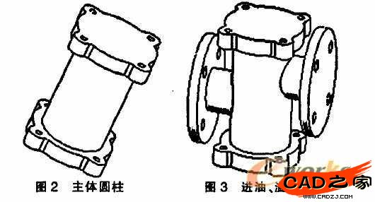 由于回油閥的結構形狀比較復雜,因此其繪制過程要十分注意結構的分解方法及順序。閥體零件的設計思路見圖2至圖5。