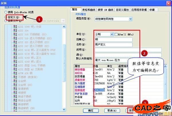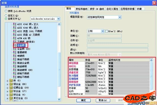如果你所用的合金鋼的性能參數與軟件自帶的有出入,需要修改的話,則可按下面的方法進行。