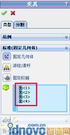 下方的小三角,并單擊下級菜單中的“固定幾何體”按鈕,此時在左側的特征樹中出現對話框。在圖形區域單擊右側上、下兩鍵槽的兩個側面(見圖11),“面<1>”~”面<4>”出現在“夾具的面、邊線、 頂點”框