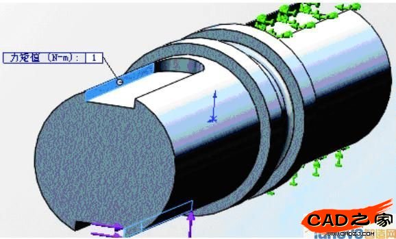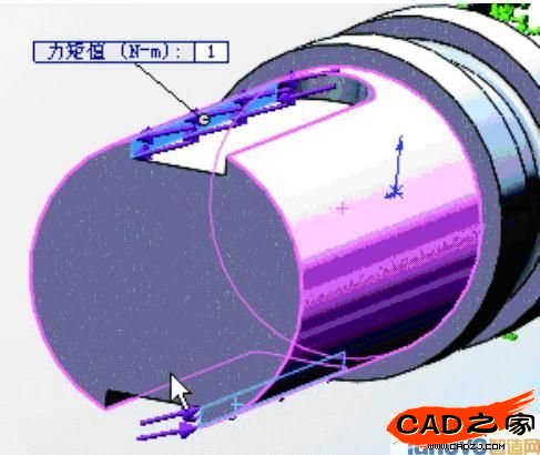 5)單擊“外部載荷”按鈕 下方的小三角,并單擊 下級菜單中的“力矩”按鈕