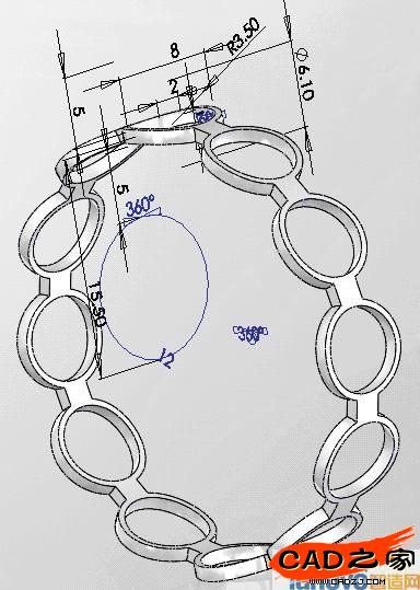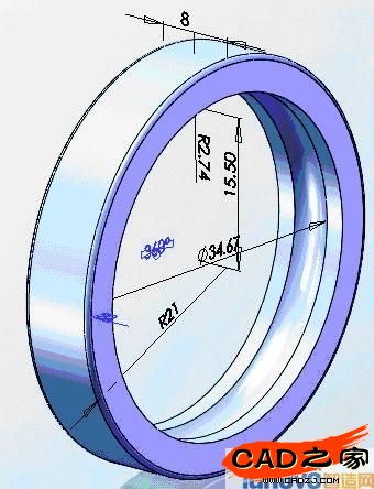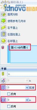 ,在圖形區(qū)域單擊內(nèi)圈的內(nèi)圓柱 面(見(jiàn)圖19),然后再在“平移”面板中分別單擊“圓周”按鈕
