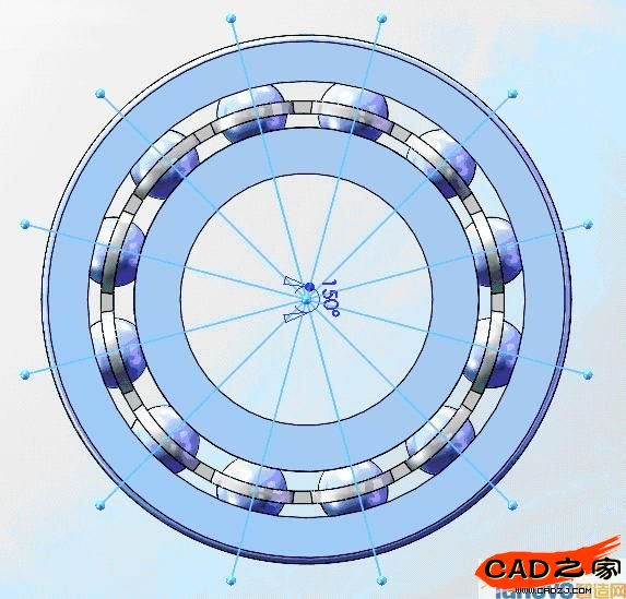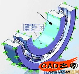 ,在圖形區(qū)域單擊滾動(dòng)體的 兩個(gè)半球面及基準(zhǔn)面6,如圖21所示,然后再在“平移”面板中分別單擊“沿基準(zhǔn)面方向1”按鈕