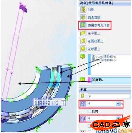 3)類似于上一步驟,添加新的夾具。在高級(jí)面板上單擊“使用參考幾何體”按鈕