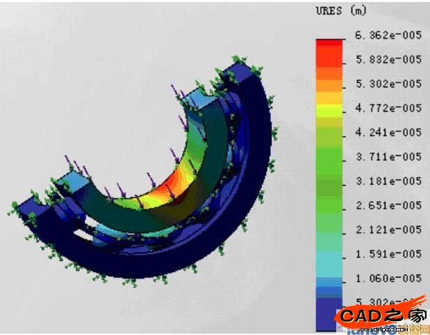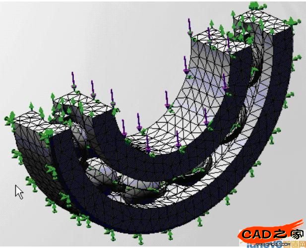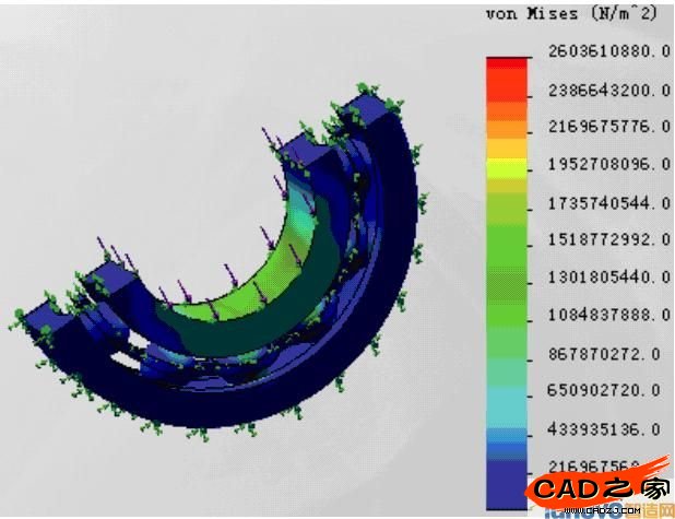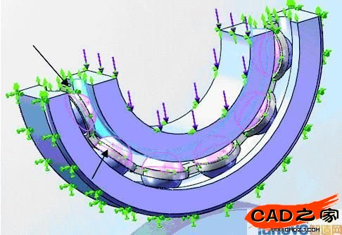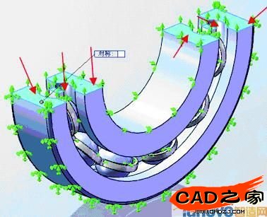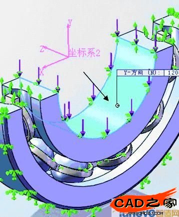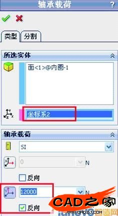 框, 在特征樹中選擇“坐標系2”,“坐標系2”出現在“選擇坐 標系”框內,然后再按圖27設置軸承載荷后單擊“確定”按鈕