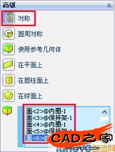 5)類似于步驟2,添加如圖25所示的六個面的“對稱”約束,因為該裝配體具有對稱關系,所以我們可以只分析一半,因此這里添加一個對稱的約束。