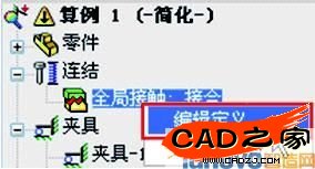 (7)如圖28所示,右擊“連結”下的“全局接觸:接合”→“編輯定義…”,在彈出的對話框中將接觸面設置為“自由(無交互作用)”后單擊“確定” 按鈕