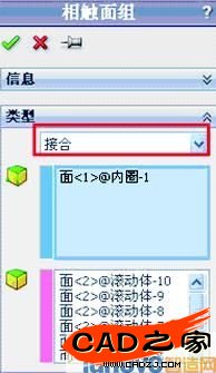 下方的小三 角,并單擊下級菜單中的“相觸面組”按 鈕