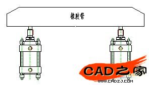 壓緊機構主要的作用是使鏈輪上的橡膠塊與聚乙烯管道壓緊,從而能產生較大的摩擦力,帶動管道向前運動,這一運動主要由氣動裝置來實現,如圖2。