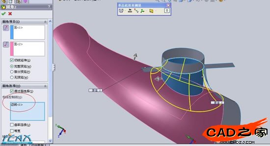 9這一步圓角,通過面選擇,注意的是,包絡控制線要選擇我們剛才所建立的分割線,用它來結束圓角上部的終止位置