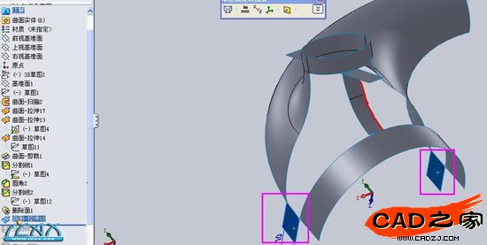12曲面拉伸、紫色線框所示,。。這里我們將圖中紅色所示線條取名。。線條AA