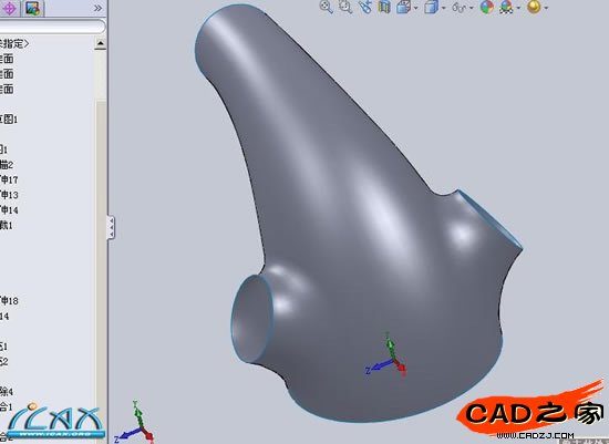 15利用刪除實體,和刪除面命令,刪除多余曲面,效果如圖所示,,下面就是曲面縫合