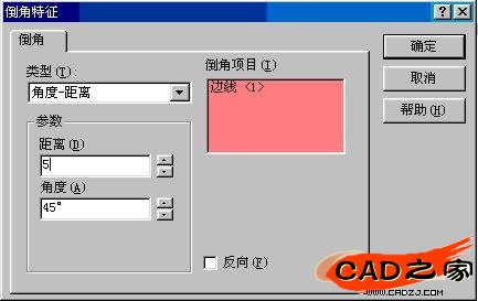 確定倒角的距離以及角度。點擊確定,