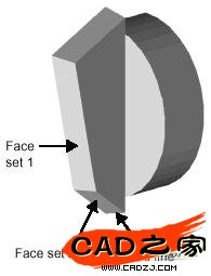 出現對話框,不要理會半徑的數值,圓角的類型選為:混合面,在圓角項目中,我們選FACE SET1作為第一組面的定義。FACE SET2作為第二組面的定義。