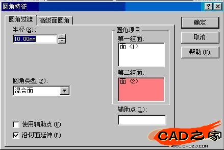 觀測一下,您作的的對嗎?注意,作為混合面圓角,有兩種確定半徑的方式:直接輸入半徑。或者以某一邊作為圓角的終止。我們上述的做法是第二中。對比一下: