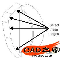 選中零件圓形底面的邊,點擊倒角按鈕