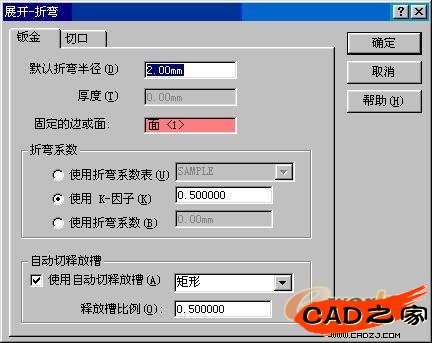 ●鈑金 特征保存了整個零件的默認折彎參數信息(厚度、折彎半徑、折彎系數、自動切釋放槽比例和固定實體等)。
