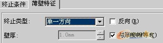 5、出現對話框,注意薄壁特征中的"于厚度相等"選項